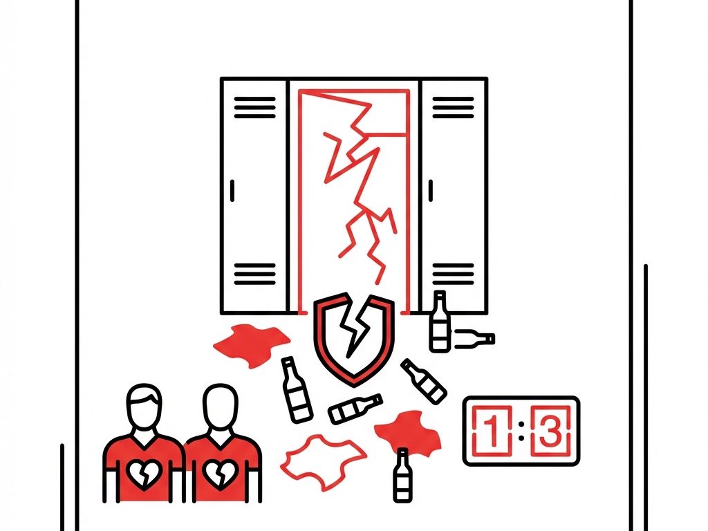 По информации Telegram-канала «Первый спорт», игроки оставили после себя разбросанные по полу бутылки и грязные тряпки. Кроме того, была проломлена одна из дверей помещения.
